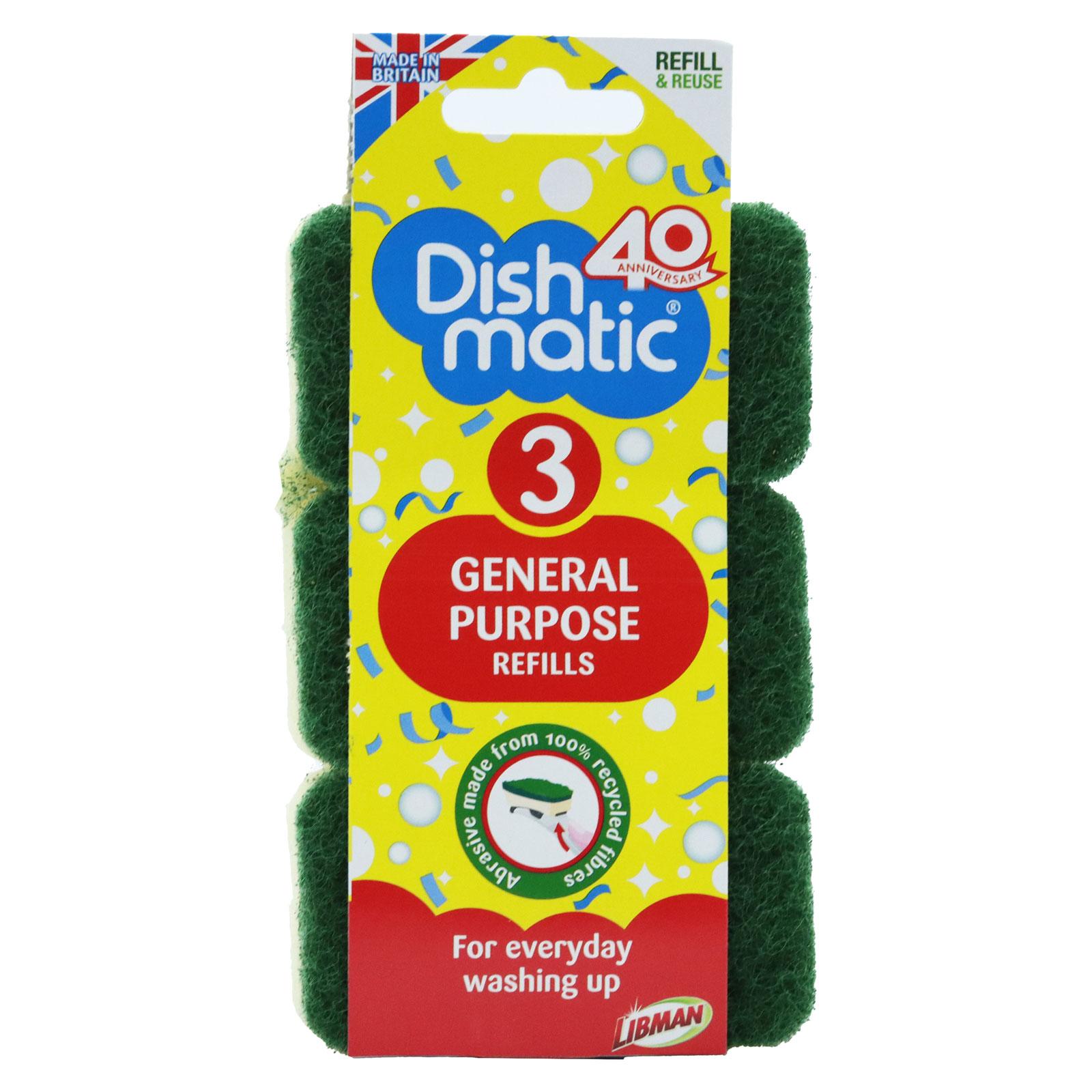 Dishmatic Dish Brush Refills Non Scratch 3 Pack